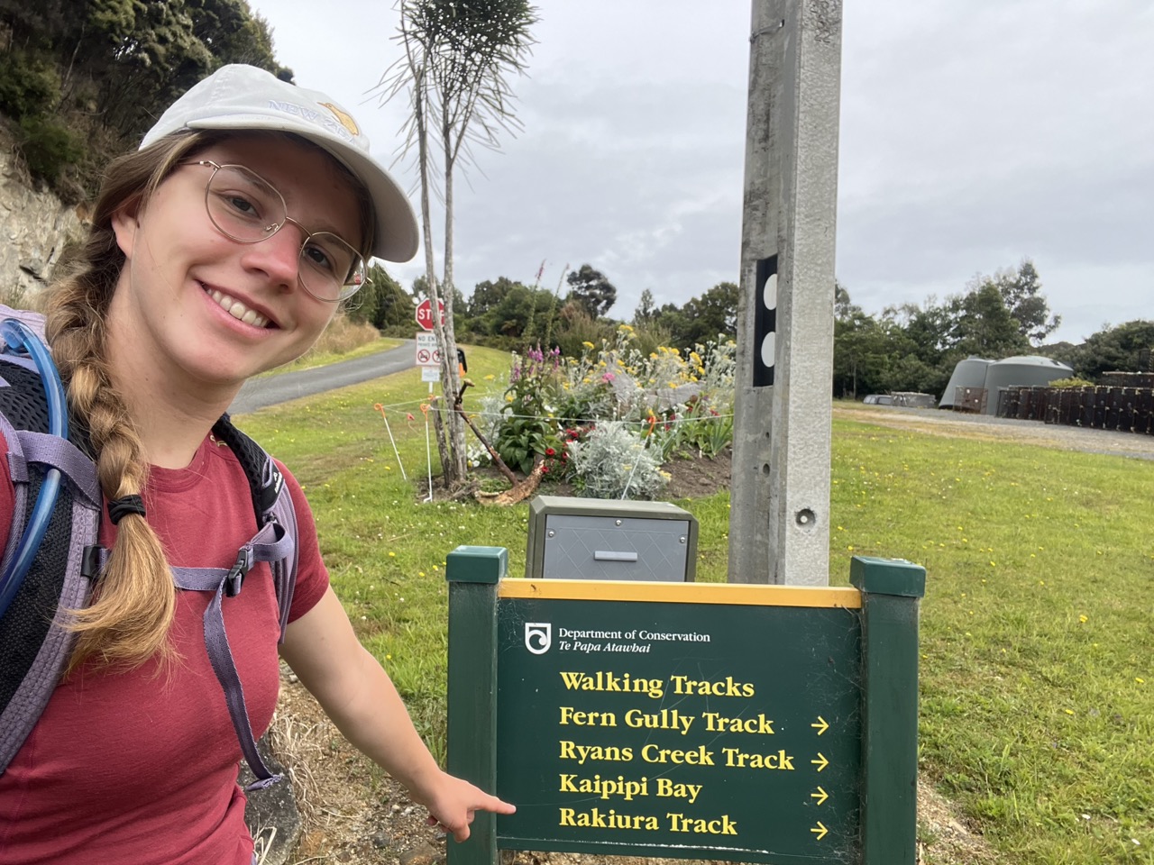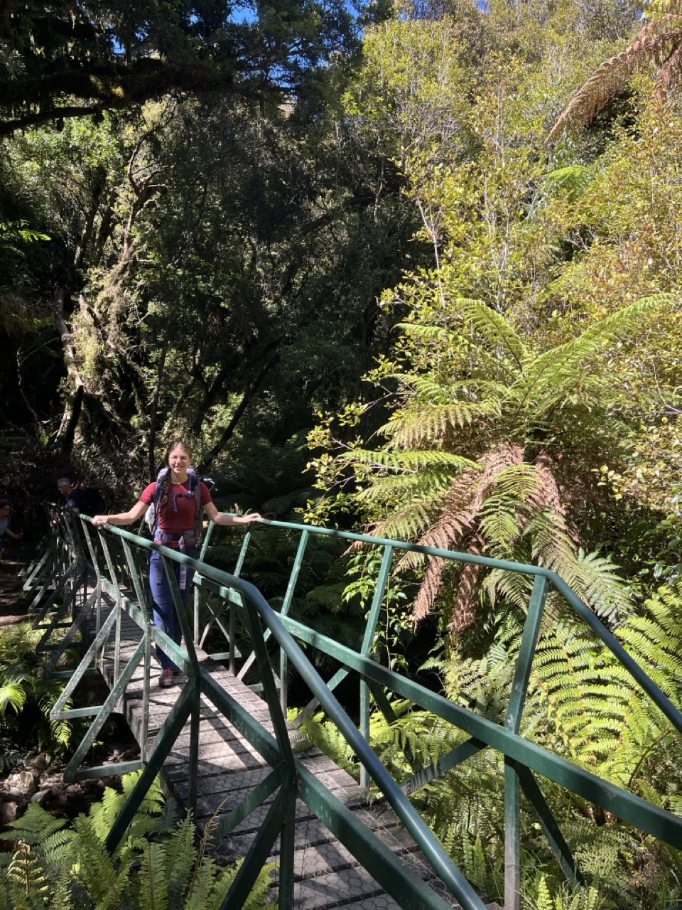 Angekommen auf der Insel ging es also los. Zunächst aber mit ein bisschen Startschwierigkeiten, denn die Trinkblase in meinem Rucksack beschloss, alles unter Wasser setzen zu müssen. Aber auch dieses Problem war bald behoben und so ging es los, alleine durch den Urwald Rakiuras. Vor meiner Ankunft hatte man mir gesagt, wenn ich Glück hätte würde ich einen Kiwi sehen. Nach meiner ersten Etappe lernte ich in der North Arm Hütte eine andere Wanderin kennen, die den Rundweg in die selbe Richtung bestritt wie ich – die seltener genutzte Richtung, aber unserer Meinung nach die bessere. So hatte ich an Tag zwei und drei eine Wegbegleiterin. Die gesamte Wanderung war zwar sehr gatschig aber es waren sehr schöne 37 km durch den Urwald und entlang diverser Buchten Rakiuras. Unser Erfolg im Hinblick auf Wildtierbeobachtungen wurde auch mit jedem Tag größer, so sahen wir an unserem zweiten Tag einen Kiwi und an Tag Drei wurden wir neben zwei Reh-Sichtungen auch Zeugen eines Kiwi Streits. Alles in allem also mehr als Erfolgreich!