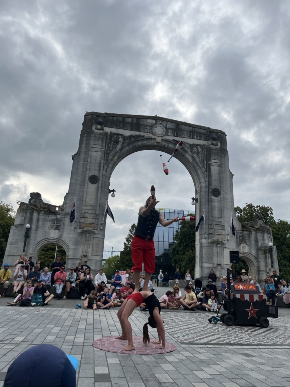 Weiter ging es für mich zu meinem letzen Stopp auf der Südinsel: zurück nach Christchurch. Dort fand zu dem Zeitpunkt gerade das World Buskers Festival Statt. Eine Woche voll täglicher Straßenkünstler-Acts für die man zahlen konnte soviel man konnte und wollte. Außerdem hatte ich noch einen Gutschein für eine Kayak Tour in Akaroa, einen kleinen Ort auf der Halbinsel vor Christchurch, da die Tour bei meinem letzten Besuch in der Stadt auf Grund von Schlechtwetter abgesagt wurde. Mein letztes To Do in Christchurch hakte ich dann an meinem letzten Tag dort ab: Einen Besuch der Roten Zone. Wie ich schon einmal erzählt habe, wurde die Stadt 2010 und 2011 durch zwei große und viele kleine darauf folgende Erdbeben zu ca 70% zerstört. Seither wurde viel Zeit und Geld in einen Wiederaufbau gesteckt, doch nicht alles wurde wieder aufgebaut. Die Rote Zone ist ein Teil der Stadt, in dem zwar den Schutt und die zerstörten Häuser weggeräumt worden war, aber der Natur danach freien lauf gelassen wurde. So schaut die Zone inzwischen auf den ersten Blick aus, wie eine große Parkanlage, aber wenn man genauer hinschaut, erkennt man doch noch Straßen, Gehsteige, Einfahrten, Strommasten und Stromkästen. Ich habe mir sagen lassen, es erinnert sehr an The Walking Dead und kann bestätigen, man fühlt sich als wäre man in einer postapokalyptischen Szenerie gelandet.