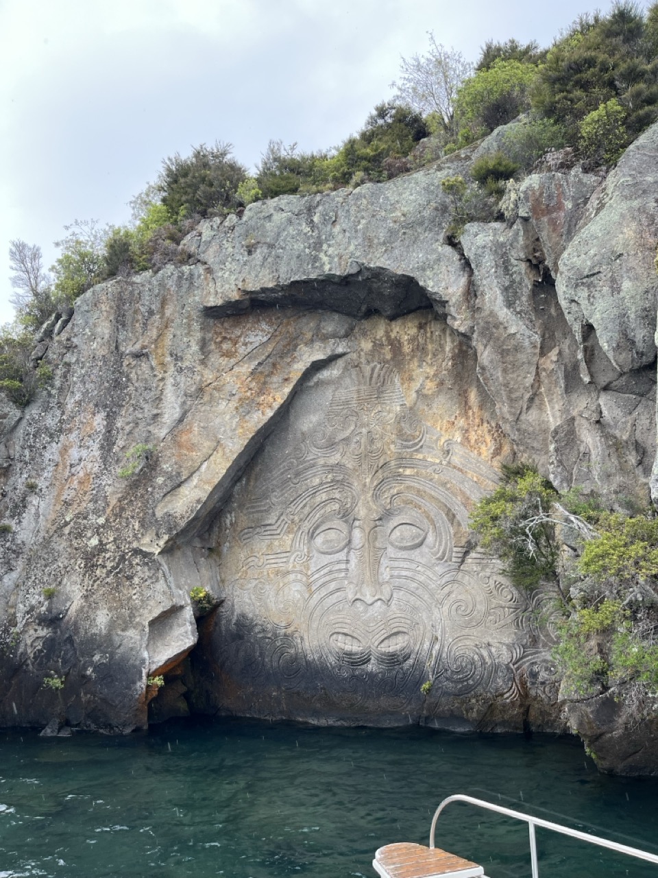 Nach Rotorua ging es für mich mit Intercity Bus nach Taupo, an den größten Süßwassersee der südlichen Hemisphäre. Ich trat meine Reise wieder einmal ganz alleine an, aber auch diesmal dauerte es nicht lange, bis ich Anschluss fand. Auf einer kurzen Segeltour, hinaus auf den See, die eigentlich dem Ziel galt, Felszeichnungen der Maori zu besichtigen, welche man nur vom Wasser aus sehen konnte, lernte ich ein britisches Pensionisten-Ehepaar kennen. Mit den beiden verbrachte ich den restlichen Tag. Auf der Tour wurde ich aber auch ein bisschen schlauer, was den See anging. So kann ich dir jetzt berichten, dass es sich dabei um den Krater eines der fünf Supervulkane handelt, die es auf unserer Erde gibt. Bei seinem letzten Ausbruch, lange vor der Ankunft der Maori, aber nicht vor Beginn der Menschheit, wurde der Himmel so stark verdunkelt, dass sogar die Menschen im alten Rom eine Veränderung feststellten. Der See liegt jetzt im Krater dieses Vulkans und hat in etwa die Größe von Singapur.