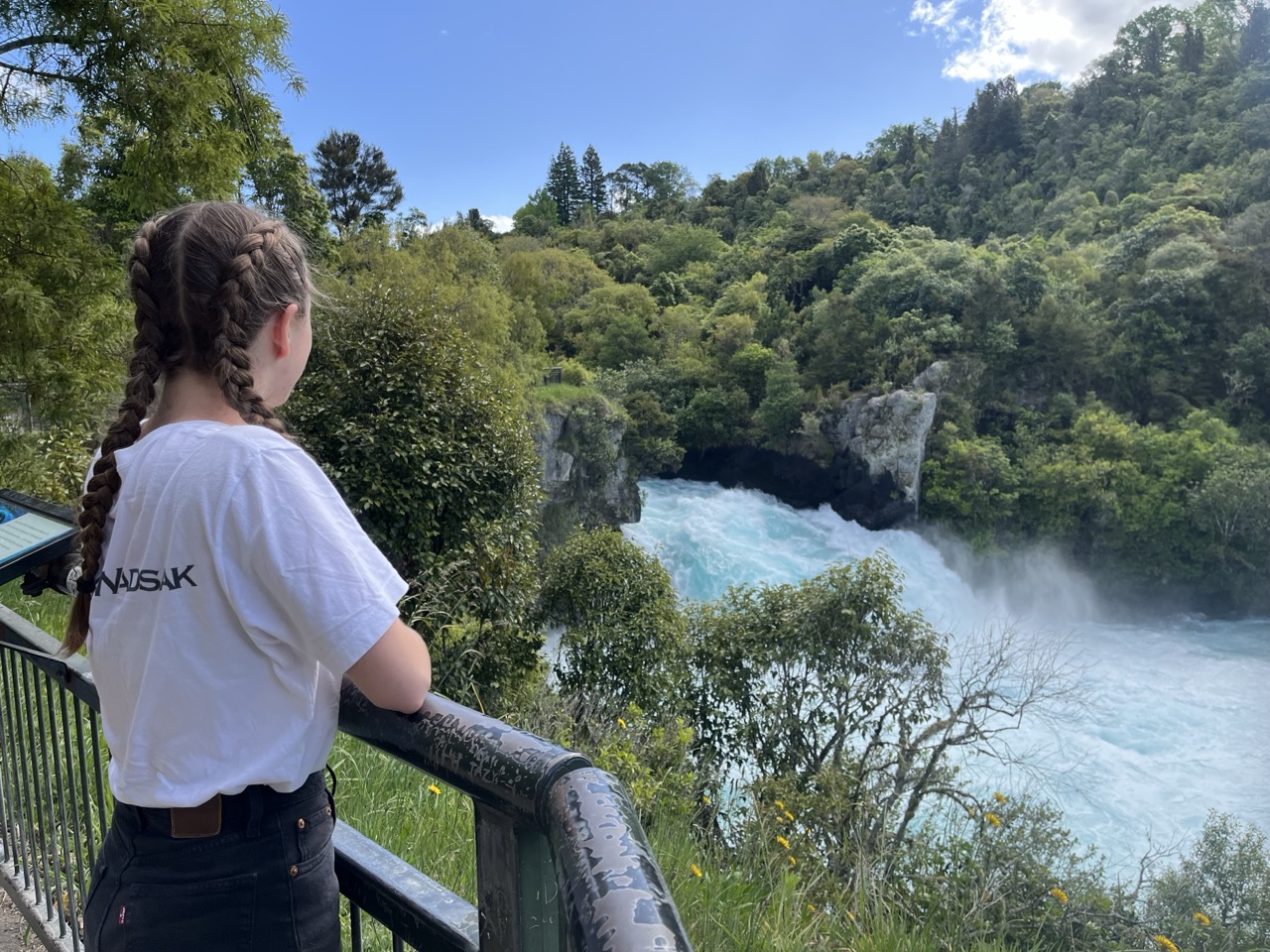 Nach meiner Bootstour lud mich das britische Ehepaar ein, mit ihnen die Huka Falls zu besichtigen. Die Idee war, ein Uber zu rufen, was mich zuerst sehr an mein Uber Abenteuer in Piha Beach erinnerte. Nachdem wir aber beschlossen, von dort aus zurückzuwandern, liefen wir diesmal wenigstens nicht Gefahr, ausgesetzt zu werden. Dieses Uber zu rufen war aber insofern auch eine besondere Aktion, als das britische Pärchen erst an jenem Tag in der Früh gelernt hatte, wie man Uber verwendet. Dementsprechend stolz waren sie, als es tatsächlich funktionierte – schon sehr herzig.