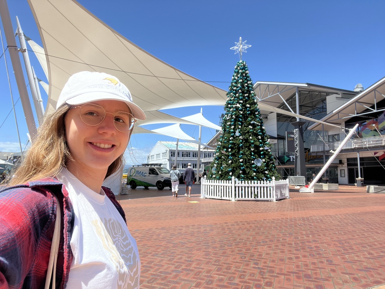 Irgendwann traf ich auch einen meiner Roadtrip Kollegen vom Anfang meiner Reise wieder. Gemeinsam erkundeten wir die Cafe- und Restaurantszene Wellingtons und nachdem ich in ihm einen Bubble-Tea-Verbündeten gefunden hatte, wurden auch diverse Bubble Tea Geschäfte der Stadt einmal ausprobiert. Wenn man so durch die Stadt geht, auf der Suche nach Cafés, Aktivitäten und sonstigen Dingen, kommt man nicht darum herum mitzubekommen, dass es bald Weihnachten wird. Obwohl es immer heißer wird, versetzen sich schön langsam alle in Weihnachtsstimmung. An jeder Ecke, in jeden Geschäft, auf jeden öffentlichen Platz und auch sonst überall findet man einen Christbaum und sogar die Natur schließt sich dem an. An den Straßenrändern sind ganz viele Pōhutukawa Trees gepflanzt, die auf englisch auch New Zealand Christmas Trees genannt werden, weil sie um die Weihnachtszeit ganz viele rote, kugelige Blüten machen. In jedem Geschäft spielt es schon seit Mitte November Weihnachtslieder und es scheint sie alle nicht zu stören, dass die Hälfte dieser Lieder von Schnee und Kälte handelt.
