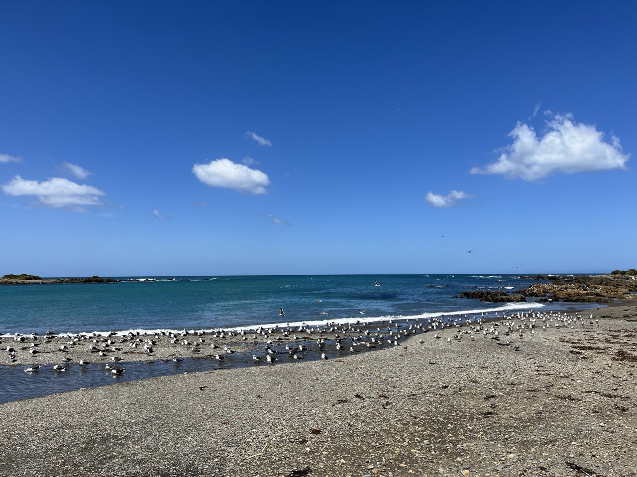 An meinem letzten Tag machten wir gemeinsam einen Ausflug zu den Red Rocks. Sie sind genau das, was der Name vermuten lässt, einfach nur rote Steine and der Küste. Der Weg dorthin war einer der windigsten Spaziergänge die ich je gemacht hatte. Am Visitor Center am Anfang des Weges wurden wir außerdem zuerst darüber informiert, dass wir an den richtigen Ort gekommen waren, um Seelöwen und Seebären zu beobachten. Eine Tafel weiter wurde die Freude wieder zerstört, da darauf zu lesen war, dass diese Tiere nur im Winter (also zwischen Mai und August) nach Neuseeland kommen um den eisigen Wintern der Antarktis zu entfliehen. Ganz entgegen unserer Erwartungen hatten wir dann aber doch Glück, denn offenbar hatte es einem Exemplar zu gut gefallen, um wieder in den Süden zurück zu schwimmen.