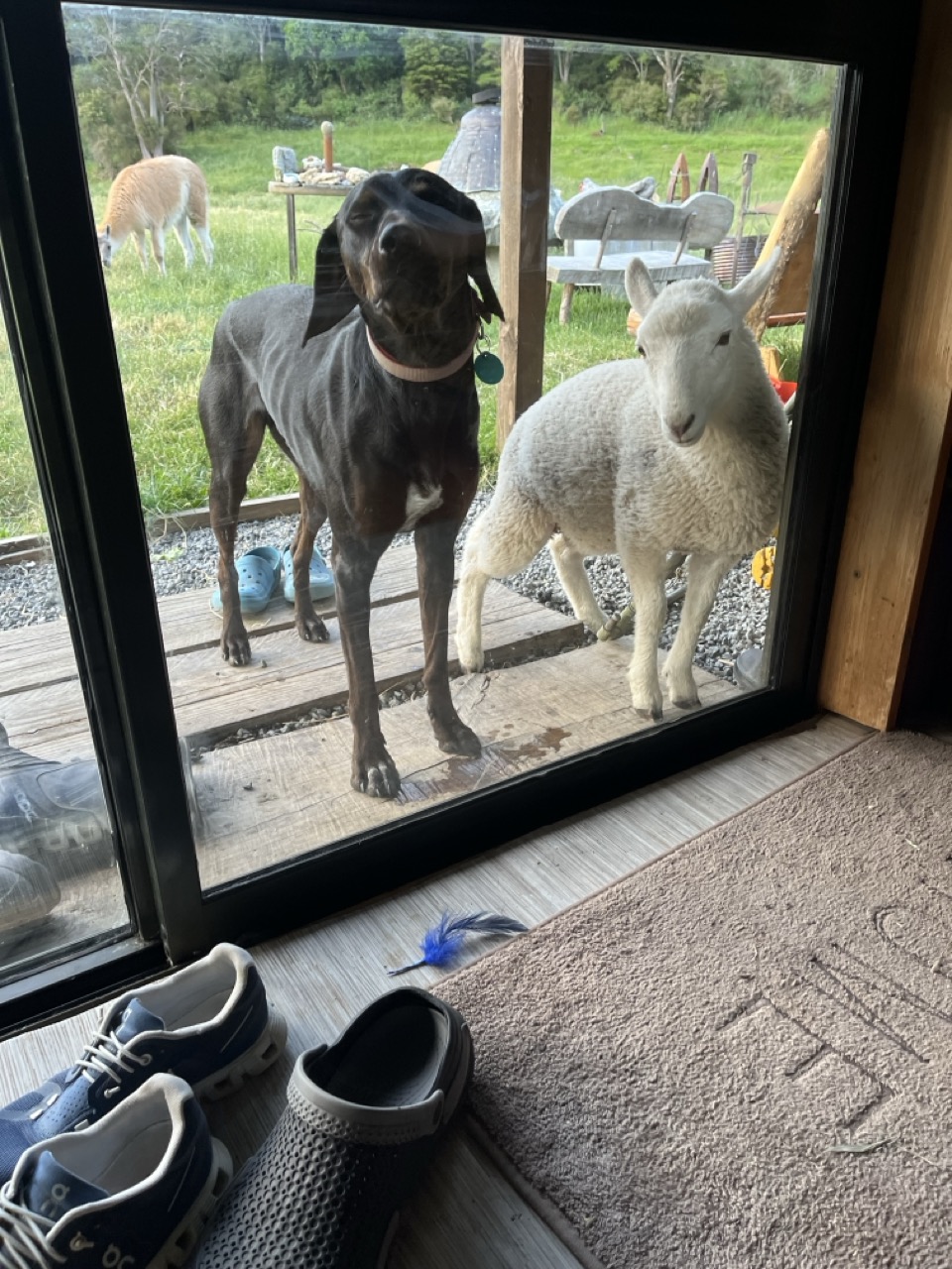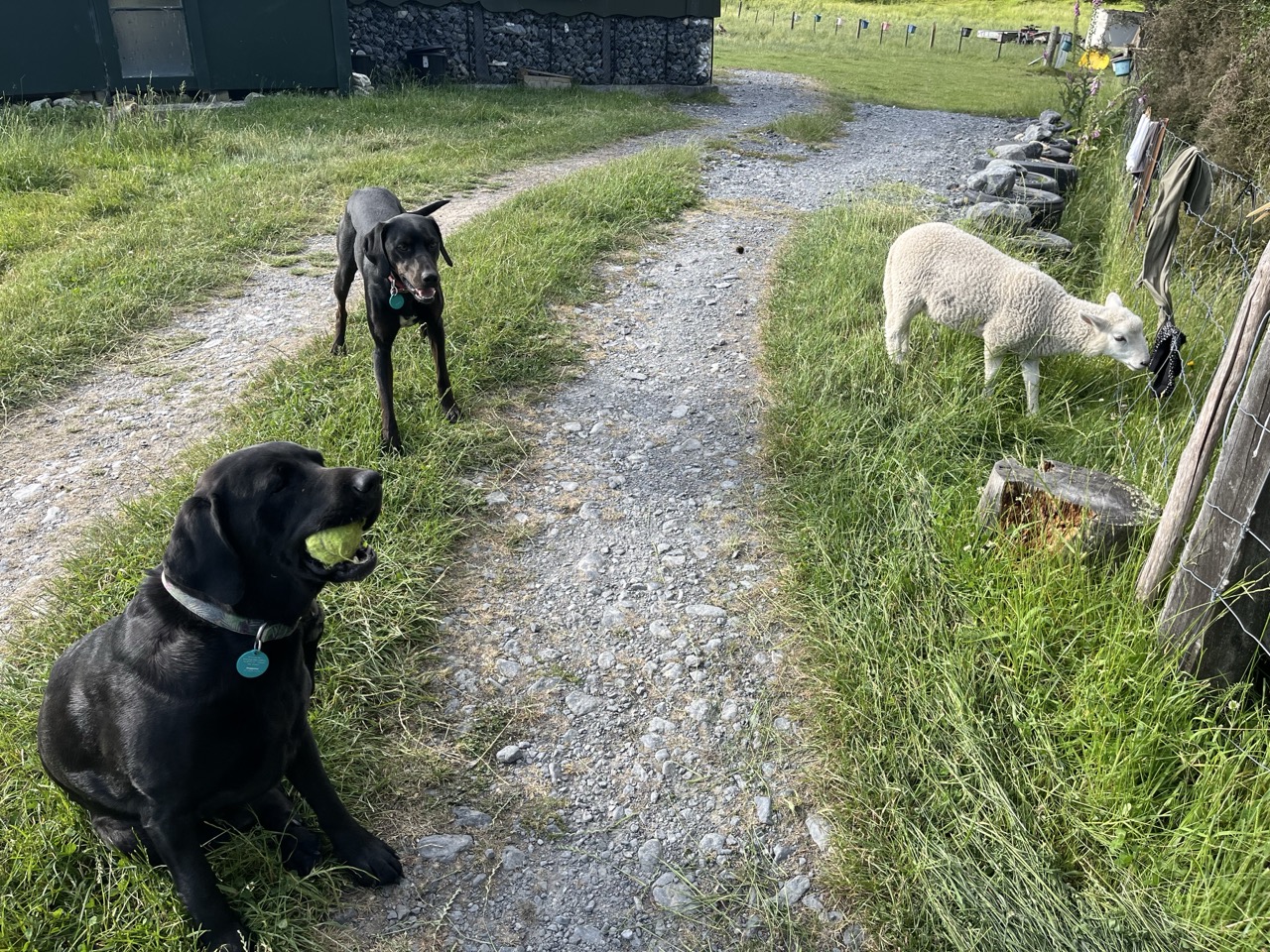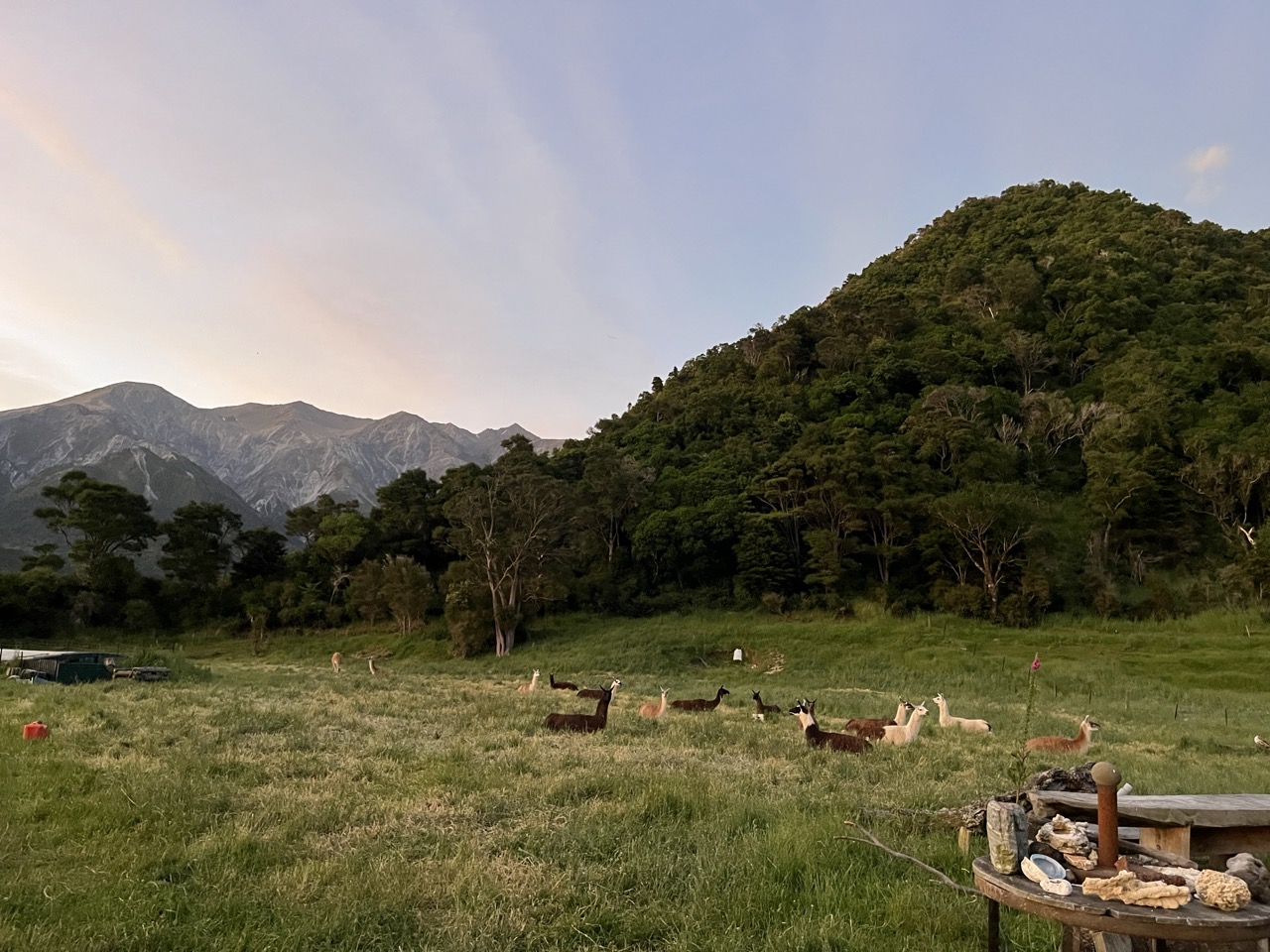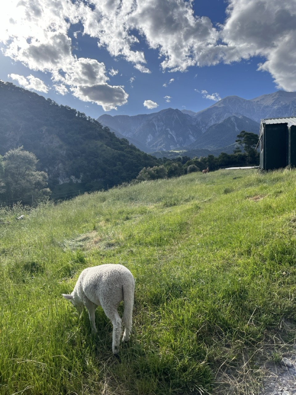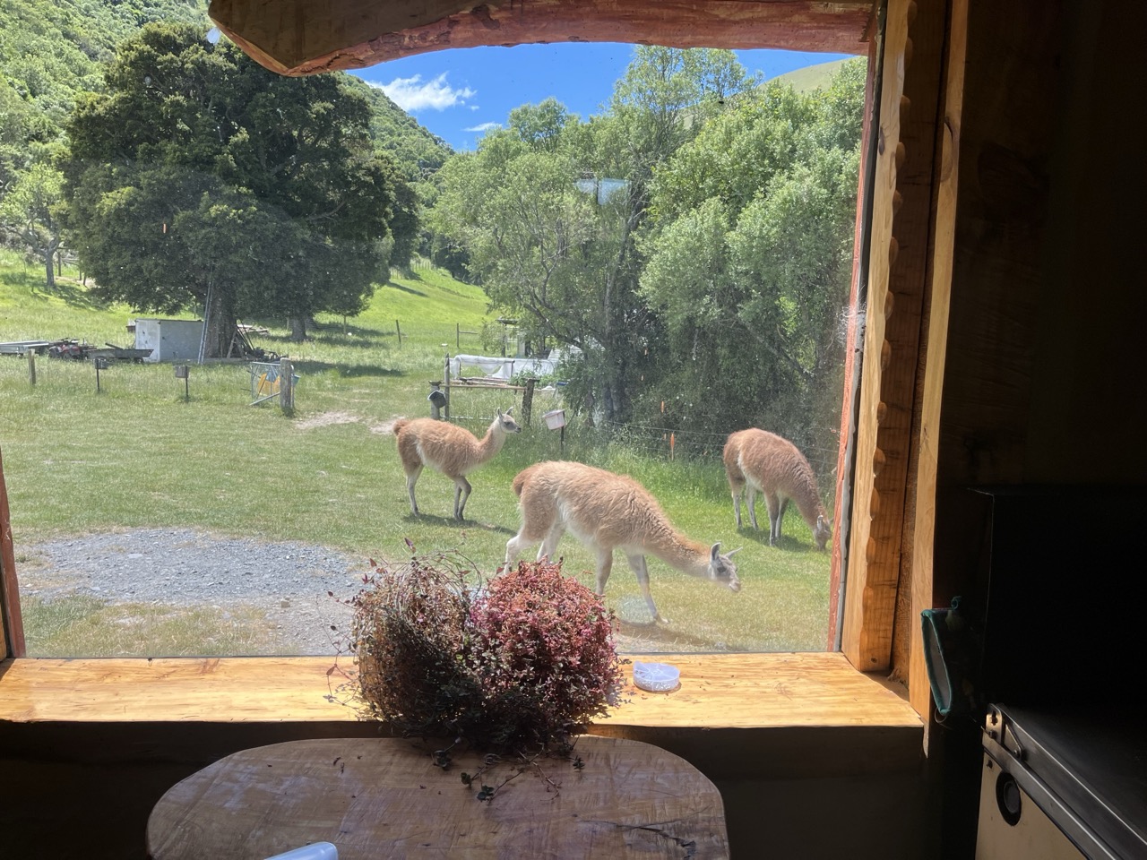 Nach einer Fährüberfahrt auf die Südinsel und einer Busfahrt nach Kaikoura wurde ich von meiner Gastgeberin Lynn abgeholt um meine erste Wwoofing-Erfahrung zu machen. Mit ihr fuhr ich in ein nahe gelegenes Tal, das so dünn besiedelt ist, dass der Postler nur die ersten drei Kilometer hinein fährt und dann alle Post in einen Sammelbriefkasten schmeißt. Etwa 15 Minuten, eine Flussüberquerung und ein Tor später durchquerten wir ein kleines Stück Wiese auf dem 15 Lamas grasten und zwei Kurven weiter tauchten zwei kleine Hütten auf. Eine kleine und eine noch kleinere. Die noch kleinere sollte mein Zuhause sein für die nächsten fünf Tage und in der kleinen wohnten meine Gastgeber Lynn und Pete. Beim Aussteigen wurden wir sofort von zwei stürmischen, großen, schwarzen Hunden, Wills und Poppy, und einem mindestens genau so motivierten Schaf begrüßt. Das Schaf war erst drei Monate alt, trug den klingenden Namen Lamb-Chop und ich war mir nicht sicher ob ihm klar war, dass es ein Schaf und kein Hund war.