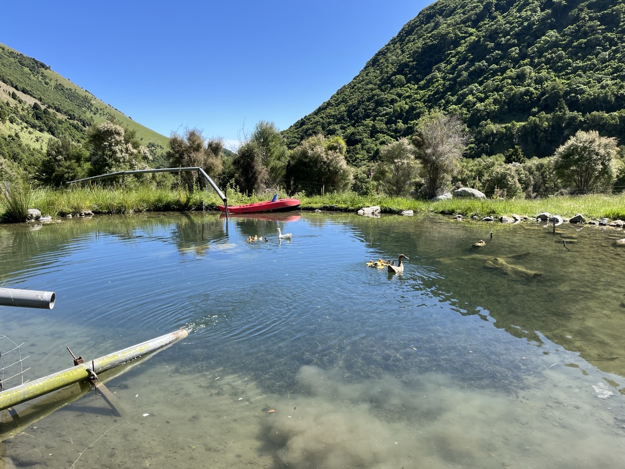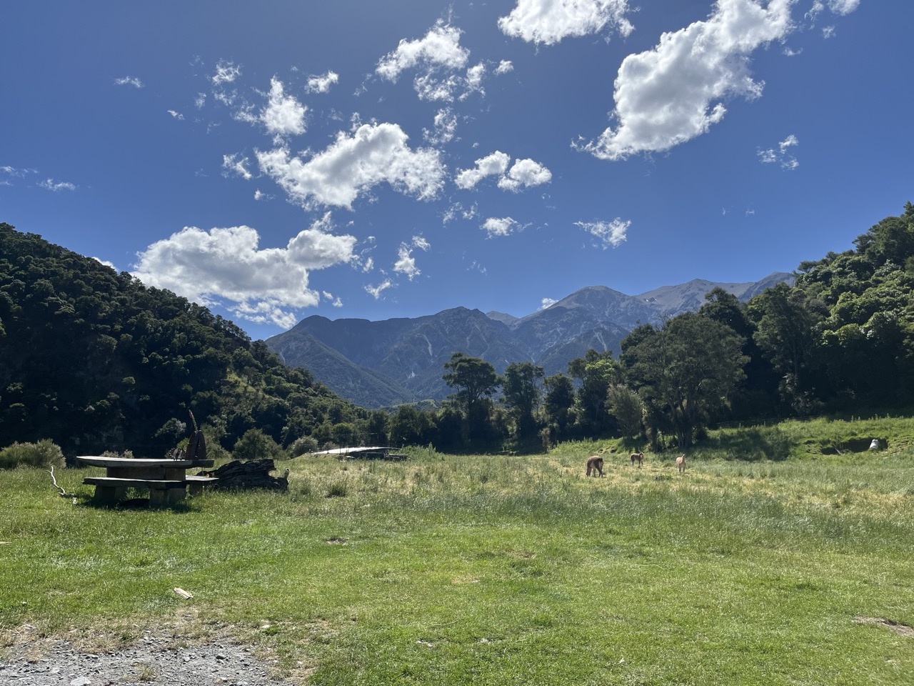 An meinem zweiten Tag war meine Aufgabe das Gras im Obstgarten mit einer Sichel zu mähen. Zumindest an den Stellen, an denen Pete mit seinem Rasenmäher nicht hinkam. Damit waren wir schneller fertig, als gedacht und so braucht ich eine neue Aufgabe. Nach einem gemütlichen Vormittagstee – “perfect time for a nice cup of tea”, hörte ich mindestens zwei mal pro Tag – brachten Lynn und ich die Lamas auf eine andere Weide und ich musste ihnen ein neues, kleines Wasserloch graben. Lamas sind komische Tiere, denn sie trinken nur sehr, sehr ungern aus Wasser, das sich bewegt. Abschließend durfte ich noch bei der kurzen Trainingsstunde der drei jungen Lamas helfen und dann gab es auch schon Mittagessen. Meinen Nachmittag verbrachte ich diesmal alleine und damit, den Bach weiter zu erkunden. Dabei lernte ich noch mehr Bewohner des Tals – und auch eigentlich der ganzen Südinsel – kennen: Sandflies. Diese kleinen Mücken schauen aus wie Fruchtfliegen, verhalten sich aber mehr wie Gelsen und sind daran schuld, dass meine Beine immer noch voller Mückenstiche sind.