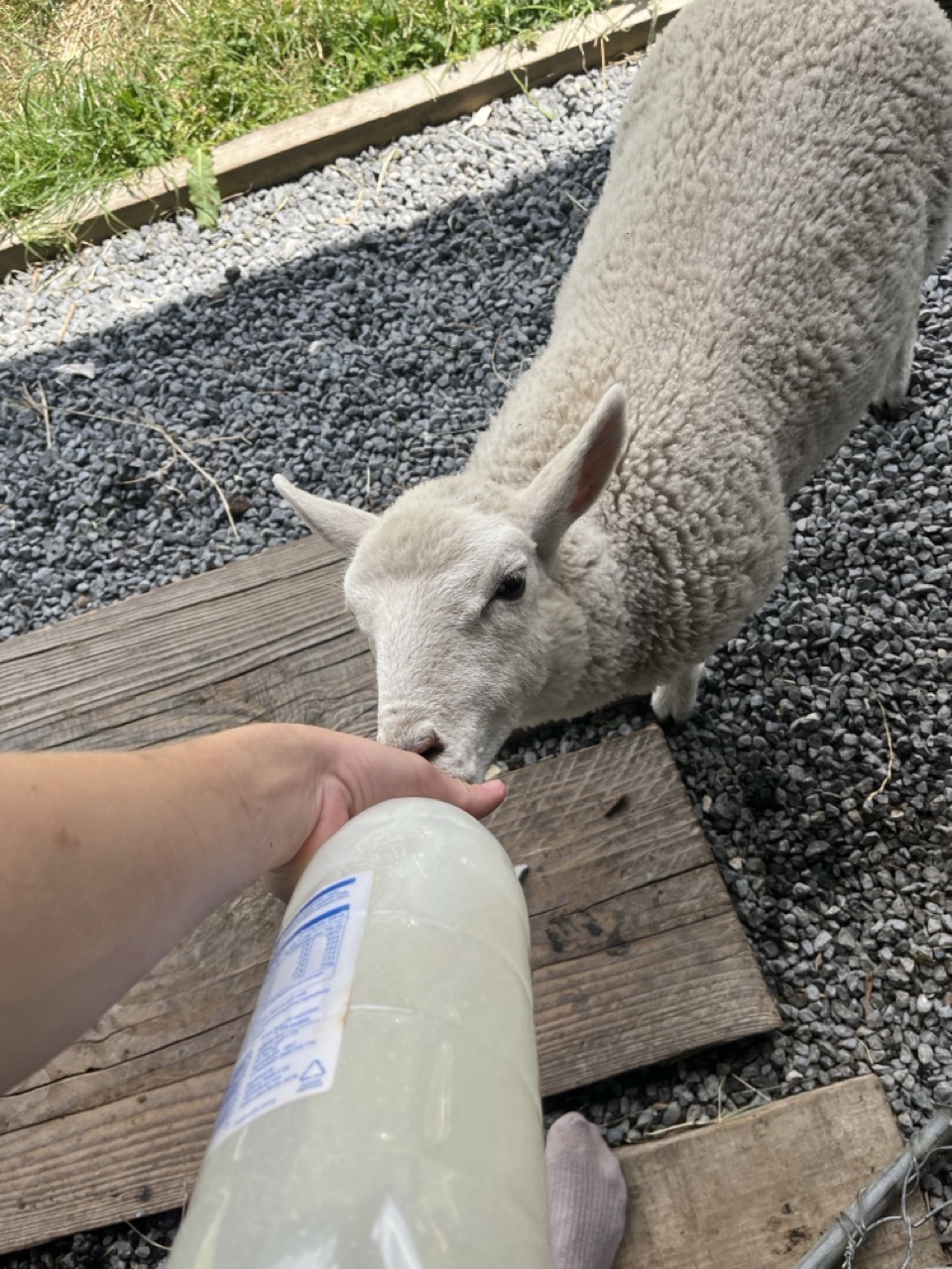 Meinen letzten Tag verbrachte ich dann großteils alleine, weil Lynn und Pete beide in der Stadt arbeiten mussten. Also machte ich mich alleine auf um die ganzen Nesselbaumstümpfe zu vergiften, die wir die Tage davor abgeschnitten hatten und dann die Fenster in der Küche zu putzen. Nur, dass es dann nicht nur bei den Küchenfenstern blieb, weil wenn man schon einmal dabei ist und alle Fenster dreckig sind, dann kann man sie auch gleich alle putzen. Auch die Fenster meines Badezimmers, die aussahen, als hätten sie noch nie Putzmittel gesehen. Auch die Tiere waren an dem Tag in meiner Verantwortung, also nahm ich Wills, den einen Hund, mit auf meine Nessel-Tour – alle anderen Tiere wollten nicht mitkommen. Zu Mittag war es dann nicht nur zeit für mein sondern auch für Lambies Mittagessen. Nachdem sie erst drei Monate alt war, bekam sie noch viermal am Tag ein bisschen Schafmilch aus der Flasche. Das war schon sehr sehr herzig und sicher eine meiner Lieblingsaufgaben.